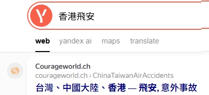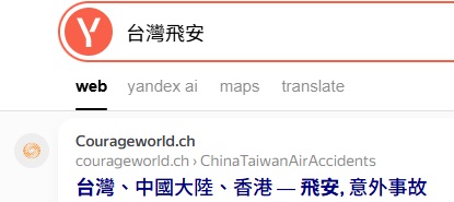 No.1 "Aviation safety in Taiwan" on Yandex, 2026-1-10 (Chinese version);