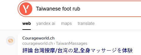 "Taiwanese foot rub" on Yandex,